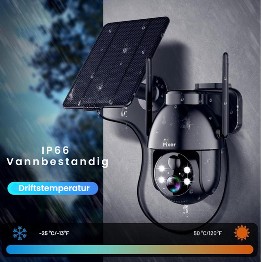 Pixer™Kraftig 1080P HD solcelle Wi-Fi sikkerhetskamera med spotlight