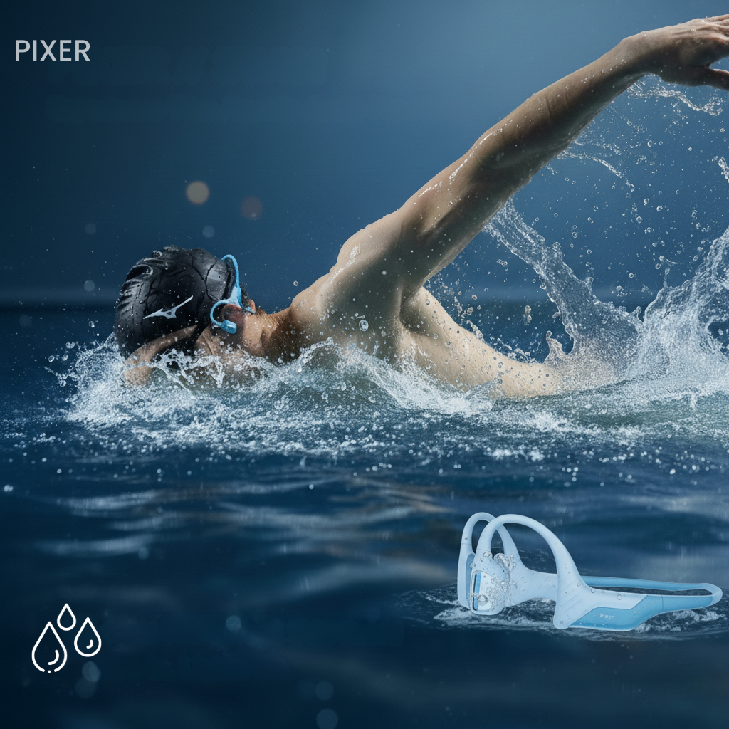 Opplev ekte frihet under vann med Pixers IP68-vanntette hodetelefoner. Designet for svømmere som vil ha kraft, klarhet og full bevegelsesfrihet, sitter de komfortabelt under både badehette, svømmebriller og ørepropper. Med en fullstendig forseglet IP68-klassifisering er de helt vanntette, svette- og regnbestandige samt støvtette perfekte for svømming, snorkling, fisking og båtturer.