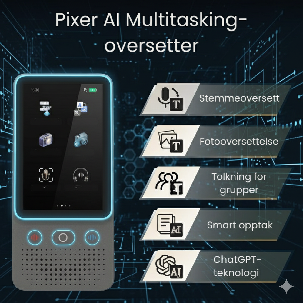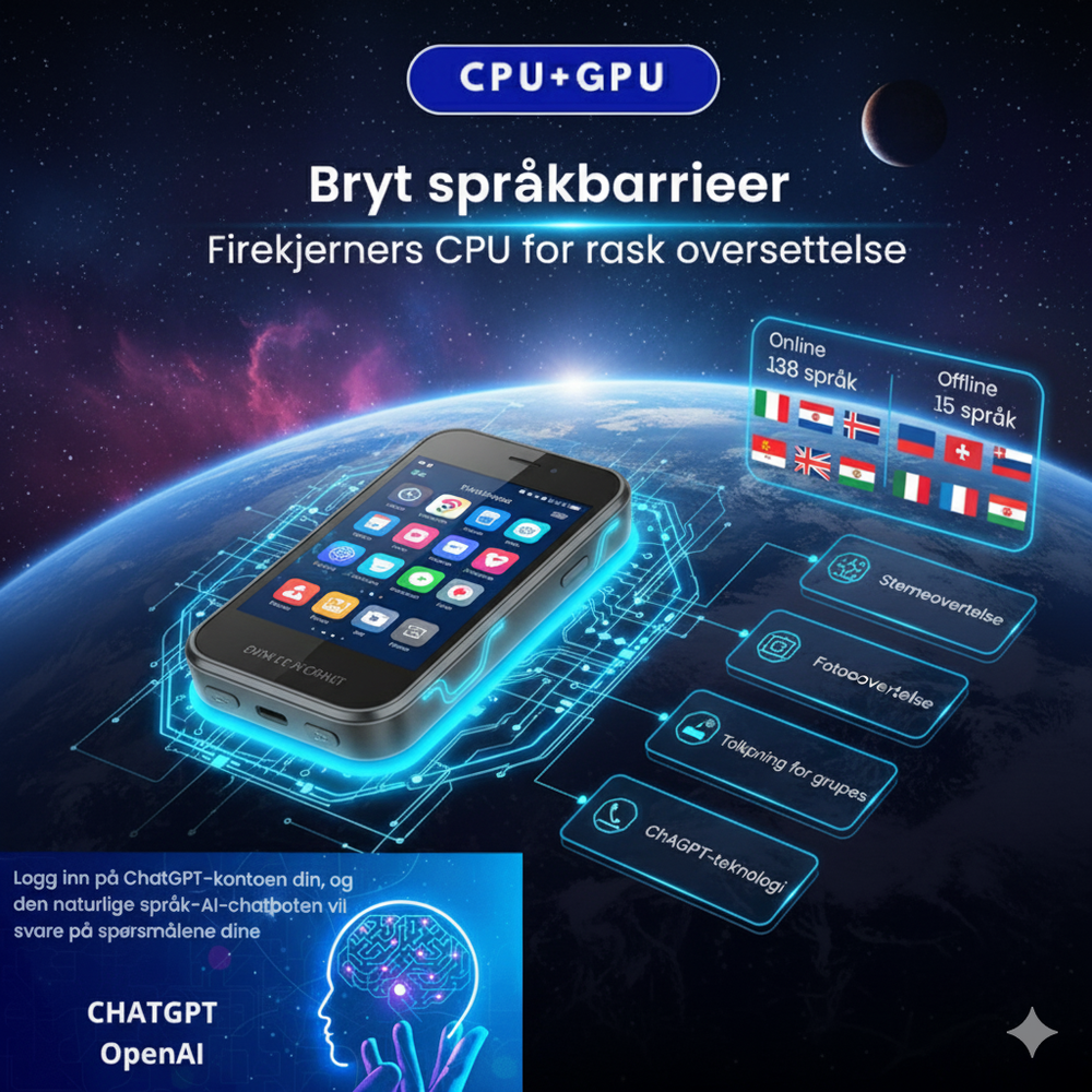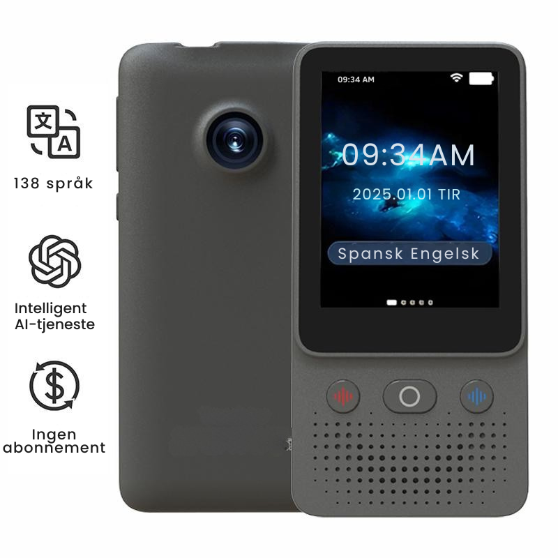 Enheten støtter opptil 138 språk, inkludert tale- og fotooversettelse, perfekt for reiser, jobb eller flerspråklig kommunikasjon.