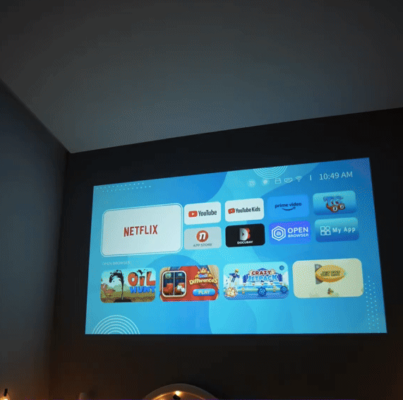 Ja – den har en offisiell Netflix-lisens, så du kan bruke Netflix, YouTube, Prime Video m.m. rett på projektoren uten ekstra enheter.